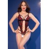 - Eleganter Teddy aus schwarzer und roter Spitze mit floralem Rosenmuster