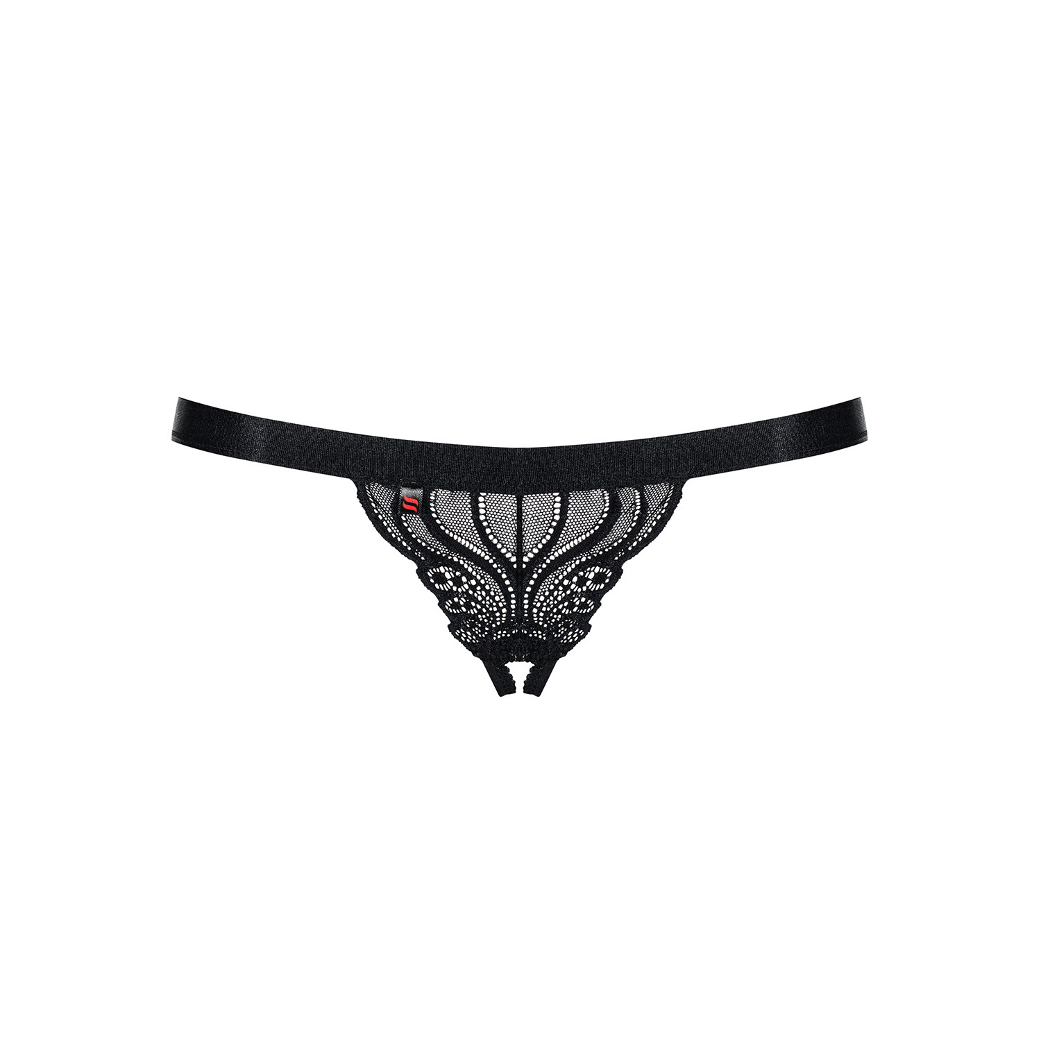 This thong is the missing piece to make you feel even more powerful! The amazing elastic lace details embrace your body delicately and the enticing opening will leave him in awe.