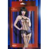 Spaghetti bodystocking made of wide mesh with cutouts that leave little or nothing to the imagination embracing your body and forms. This bodystocking is accompanied by hotpants.
