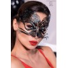 Máscara de filigrana de metal negro, anatómica y flexible, realzada por numerosos diamantes de imitación.