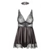 Una picardía, un tanga y un antifaz de encaje a juego. Este conjunto es la elección perfecta para ocasiones especiales y veladas románticas.
