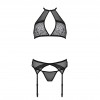 L'ensemble Satara, composé d'un soutien-gorge, d'un string et d'un porte-jarretelles, est le choix idéal pour celles qui souhaitent une belle lingerie avec une touche irrésistiblement sensuelle.