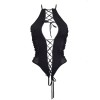Parte anteriore: Il sensuale fiocco di raso che percorre tutto il capo aggiunge mistero e un tocco provocante che cattura lo sguardo.