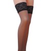 Calze autoportanti con pizzo a contrasto che creano un effetto sofisticato e sensuale. Allacciatura sicura e confortevole, senza bisogno di reggicalze.