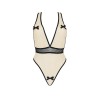 O body Viena bege da Passion é uma combinação deslumbrante de tule num tom creme com delicados pormenores a preto, criando um contraste elegante e sedutor.