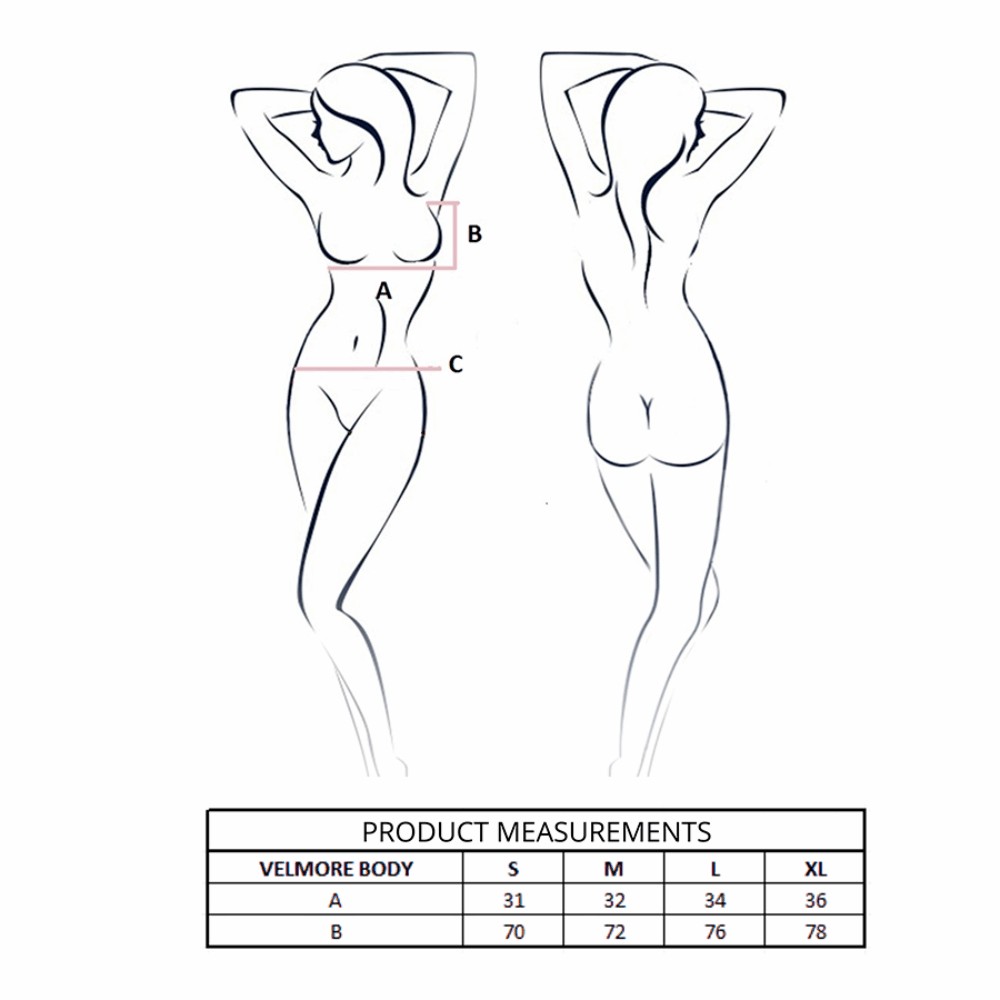 O body VELMORE é a própria definição de feminilidade em sua forma mais espetacular: elegante, versátil e inesquecível.