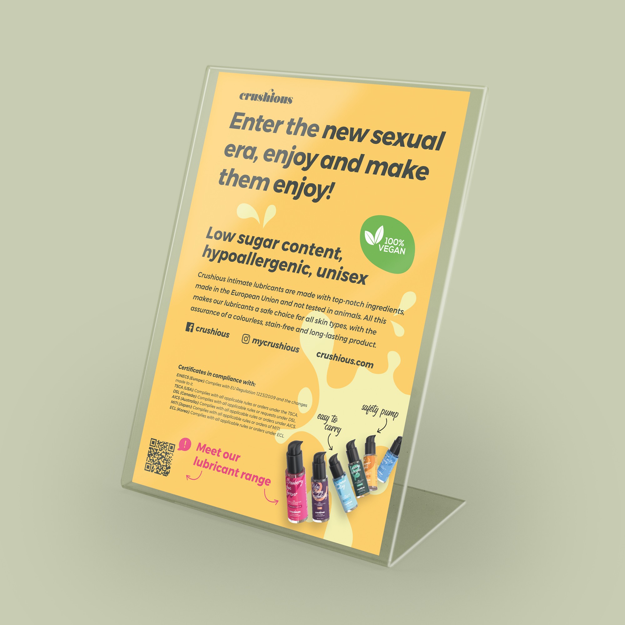 К этому дисплею прилагается дисплей формата А5 с рекламой лубрикантов Crushious на английском языке.