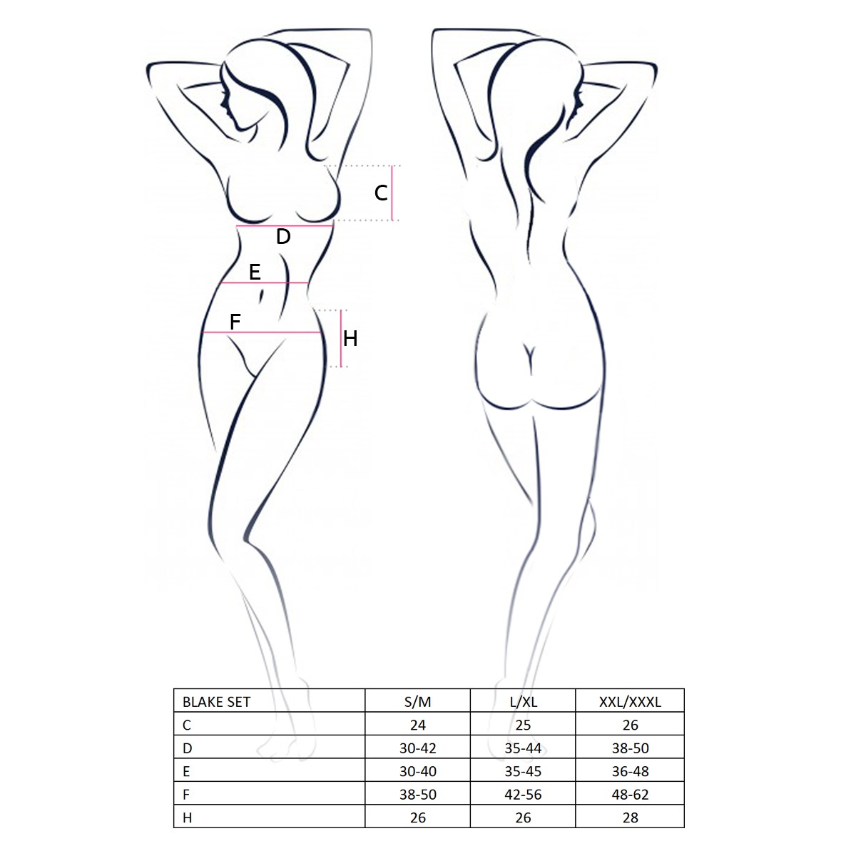 Комплект Blake от Passion сочетает в себе элегантность и чувственность: красный бантик на бюстгальтере и мягкие материалы, обеспечивающие комфорт и идеальную посадку. Он идеально подходит для тех, кто хочет добавить в свой образ нотку изысканности и соблазнительности.